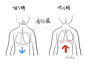 この正しい横隔膜の動きをイメージできるようになると、演奏時に力ではなく体の芯から支えられた、音の伸びや響きが変わってくるはずです。