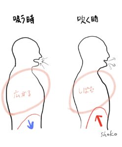 管楽器奏者や声楽家は、「腹式呼吸で息を吐け」「お腹を凹ませて、息を出せ」と指導されることが多いかと思います。